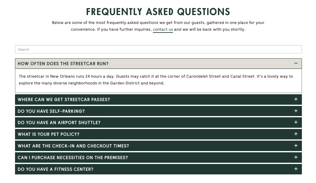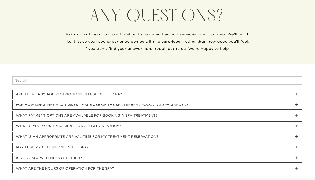 Provide answers to Frequently Asked Questions about your business. Includes SEO schema friendly markup for optimal indexing and usage in search engine results and voice search.