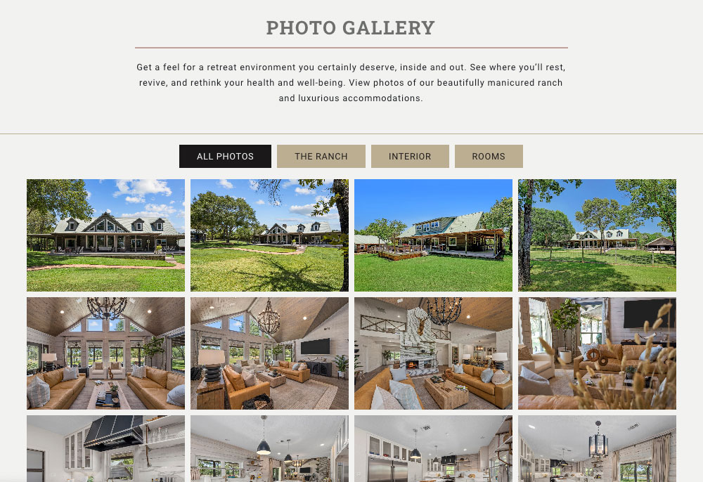 Showcases a list of images in a grid layout, that when clicked, open a pop-up image slideshow featuring larger versions of the images. The responsive grid adjusts to fit optimally on any device size, and automatically converts your uploaded images to optimized versions that are served to the user on mobile or desktop devices, ensuring optimal load times and user experience. This version also includes filters that can be defined by the user. Each image can have multiple filters.