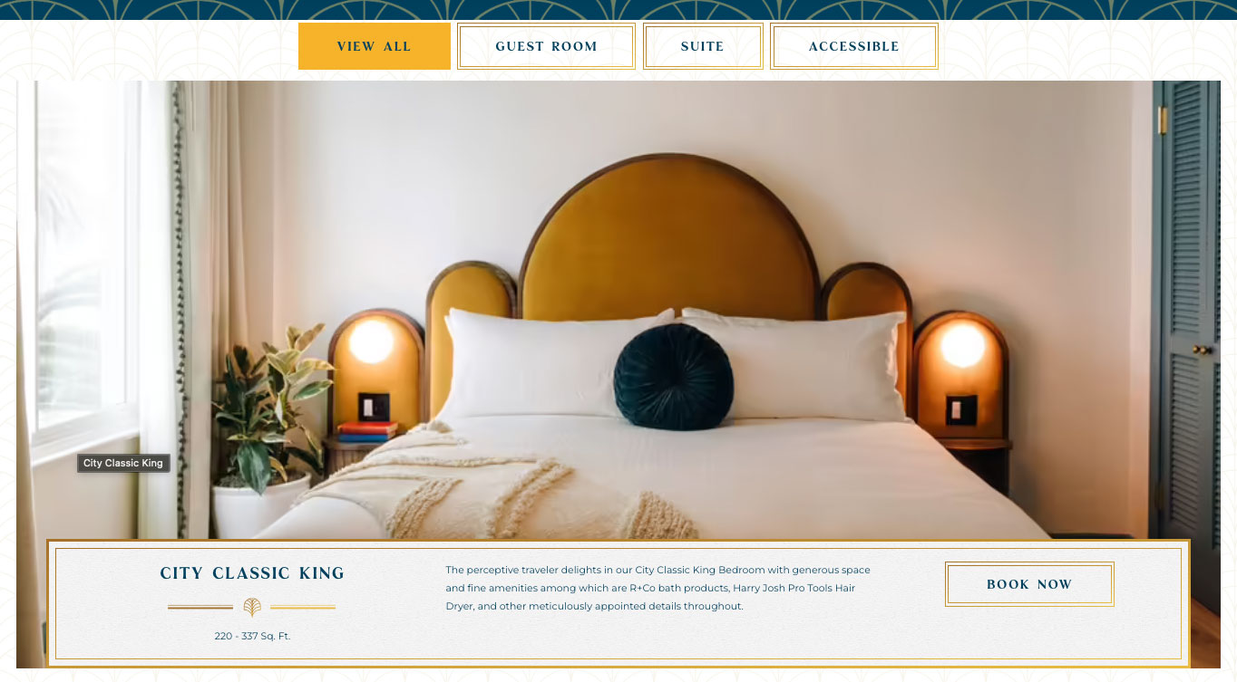 Display rooms with filtering ability and toggle to view more. Uses Accessible Slick version 1.8.1@accessible360.1.